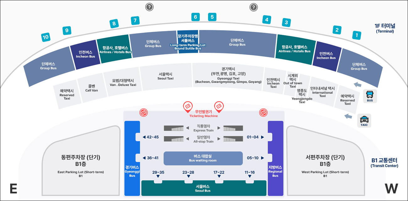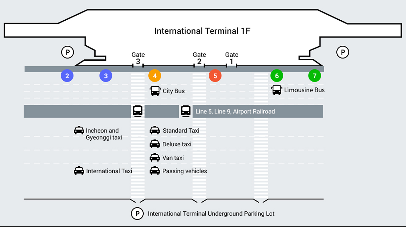 → 인천국제공항 제1터미널 3층 게이트 7 에서 111번 버스 로 환승
